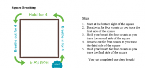 ■ Try playing the “5 Things Game.” This involves sitting comfortably where ever you are and thinking of five things you can feel, hear, see, smell, and taste. This can be done at any point throughout the day (e.g., in the car, in class, before bed, etc.). This is a quick mindful activity that helps re-orient a student’s mind to the present moment.